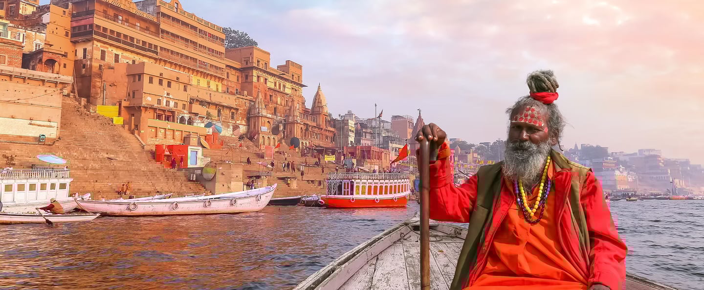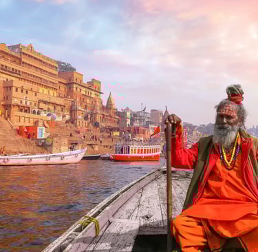 Per comprendere la mistica atmosfera che avvolge Varanasi è d’obbligo un giro in barca lungo il Gange al sorgere del sole ( e anche al tramonto del giorno) quando arrivano i pellegrini che scendono ai ghat per la abluzioni: uomini, bambini e donne avvolte nei fantasmagorici sari che vengono a purificare la loro anima, maestri di dottrina sotto gli ombrelloni che impartiscono gli insegnamenti religiosi; c’è chi è intento agli esercizi yoga e chi sta in meditazione, quelli che vendono le cose più disparate e i mendicanti che chiedono l’elemosina; gente che canta, che suona o che prega e in lontananza sul ghat Harischandra le pire accese per la cremazione. È un caleidoscopio in continua successione che incanta il visitatore e che lo fa meditare.