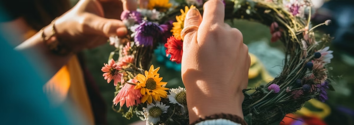 una Ghirlanda di Ritiri di Primavera a tema che come fiori e fili d'erba si intrecciano tra loro per celebrare l'arrivo della sorgente inesauribile dell'Energia della Vita tanto attesa da ogni essere vivente